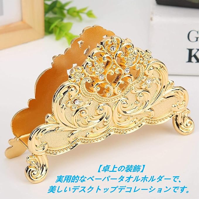 ナフキン立 ペーパーナプキンホルダー 紙ナプキンスタンド 名刺スタンド ティッシュ収納ラック 金属 デスクオーガナイザー 実用的(ゴールド)