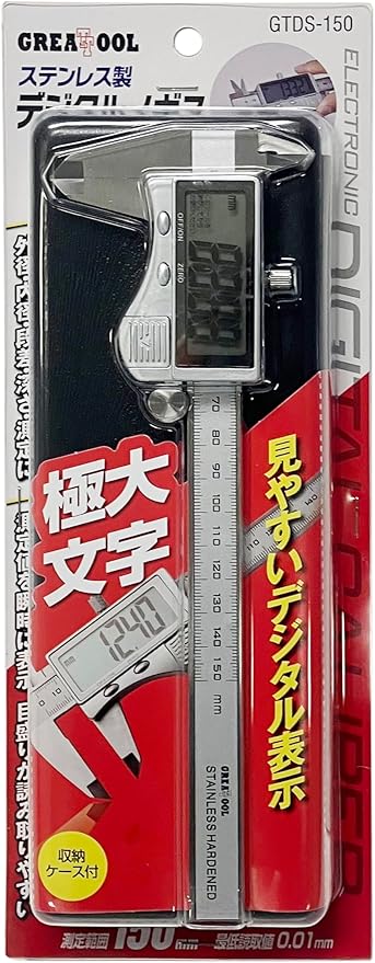 GREATTOOL アークランドサカモト ステンレス製 デジタルノギス 極大文字 150mm 収納ケース付き GTDS-150