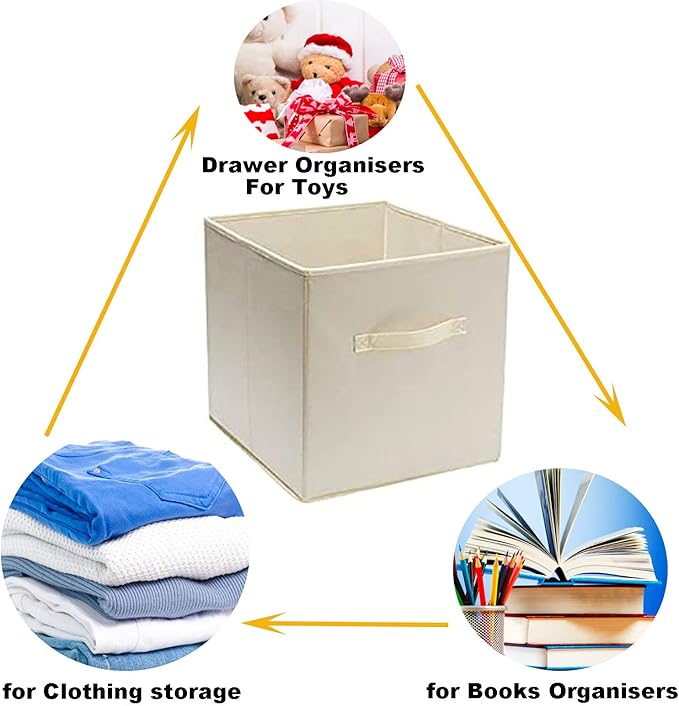 80G 不織布素材: 高品質のキューブ収納ボックスとオーガナイザーは、厚さ 2mm の段ボールを使用した不織布で作られており、構造的な安定性を高め、変形を防ぎます。