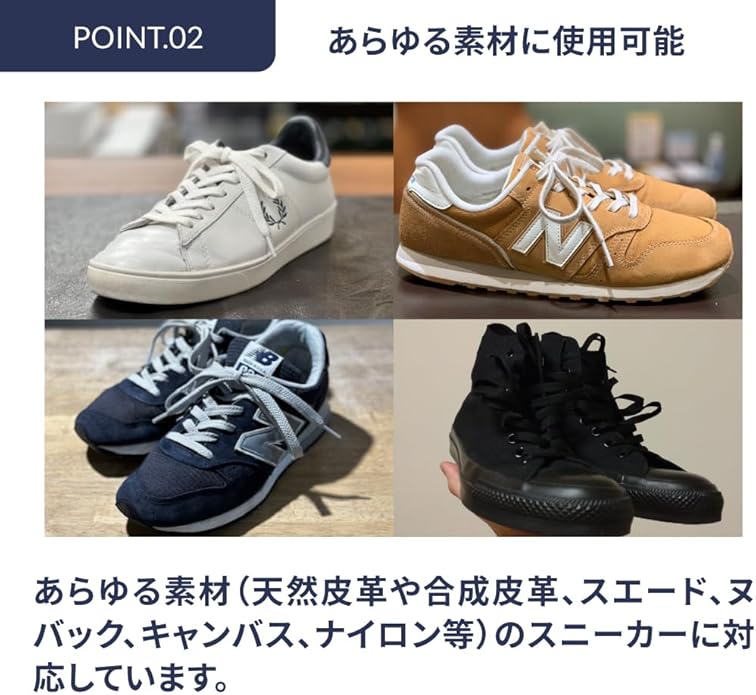 レザー/スエード/キャンバス/ナイロン素材を気にせず使用可能