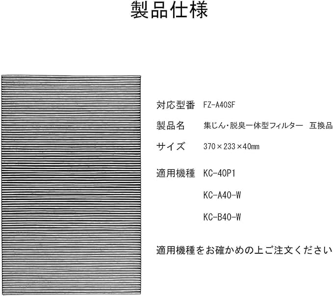 FZ-A40SF 集じん・脱臭一体型フィルター 加湿空気清浄機用フィルター 集じんフィルター KC-A40 KC-B40 KC-40P1 適合フィルタ 空気清浄機用交換部品 (形名:FZ-A40SF)