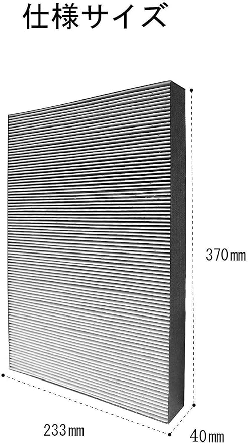 【材質&サイズ】材質:ポリプロピレン・ポリエステル・活性炭。サイズ:370x233x40mm