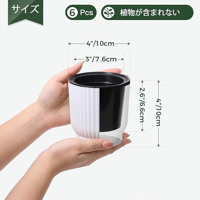 【サイズ】自動給水ポット:6点セット ;10.1 x 10.3cm (直径x高さ); ご注意: 飾りの植物は含まれませんので、ご了承ください。