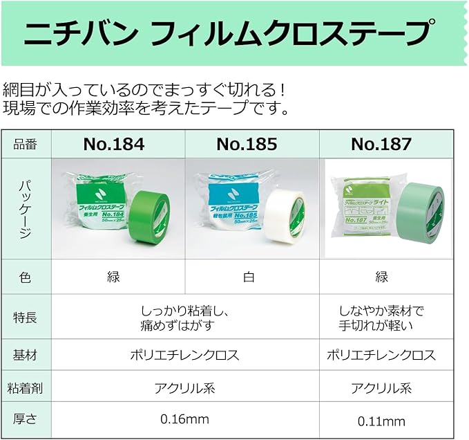 ニチバン フィルムクロステープ 養生テープ No.187 50mm 25m 緑 187-50
