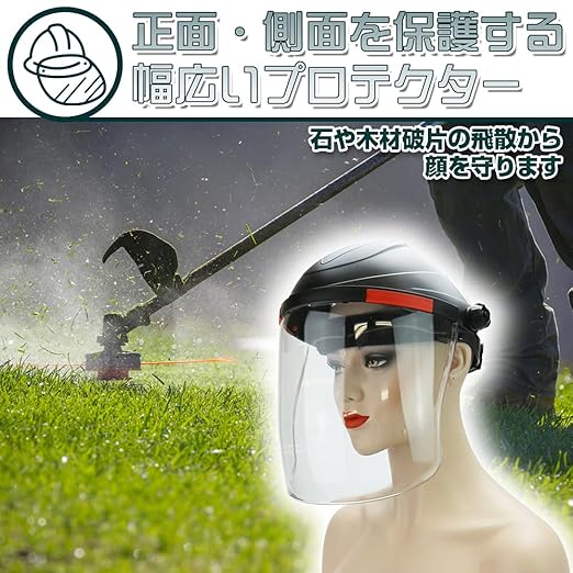 かぶり型防災面 保護カバー フェイスをガード 草刈り機 芝刈り機 作業用 サイズ調節可能 男女兼用