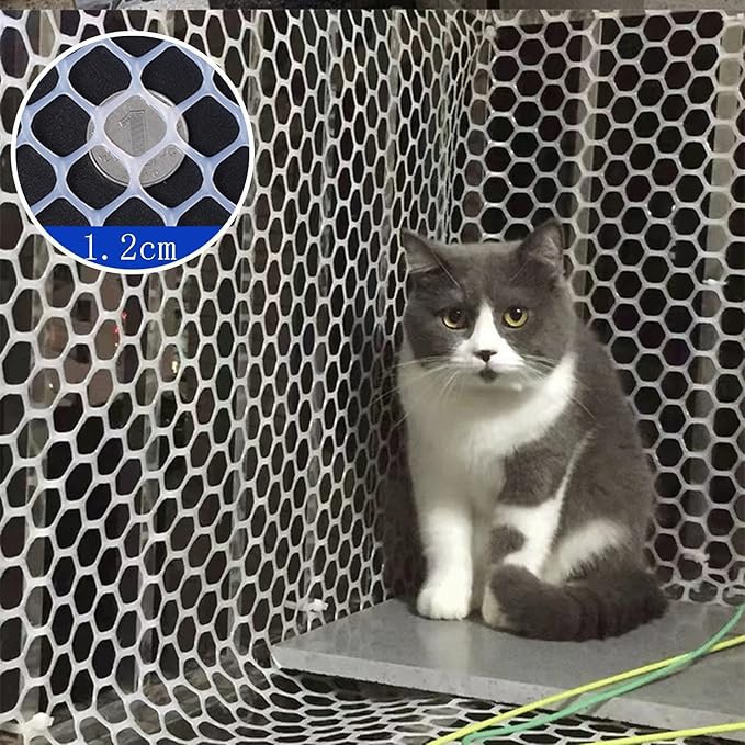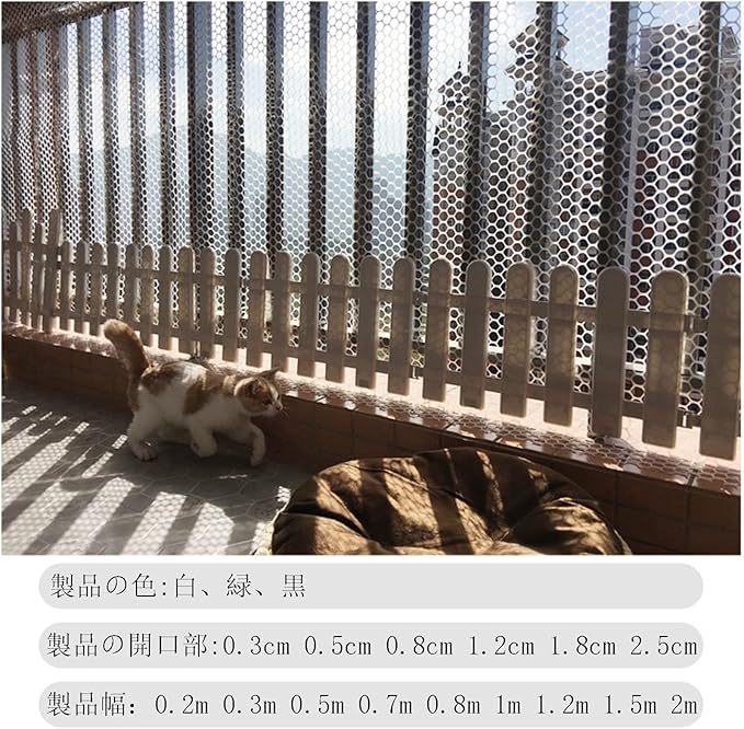 安全保護:この保護ネットは、猫や子供がバルコニーや窓から落ちるのを効果的に防ぎ、寝ている間、窓の近くで遊んでいる間、または高所で遊んでいる間、猫を安全に保ちます。 いつも猫を見つめる必要はありません。 通常の換気のためのメッシュ付き。