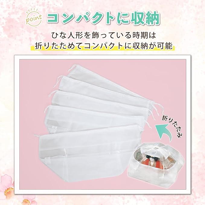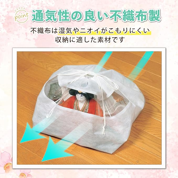 ●通気性の良い不織布でひな人形をホコリから守り大切に保管。