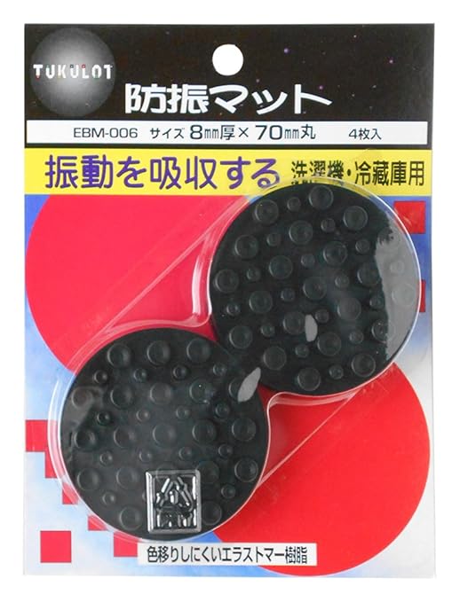 和気産業 防振マット 洗濯機・冷蔵庫用 丸 黒 厚さ8X直径70mm 電化製品 振動 吸収 EBM-006 4枚入り