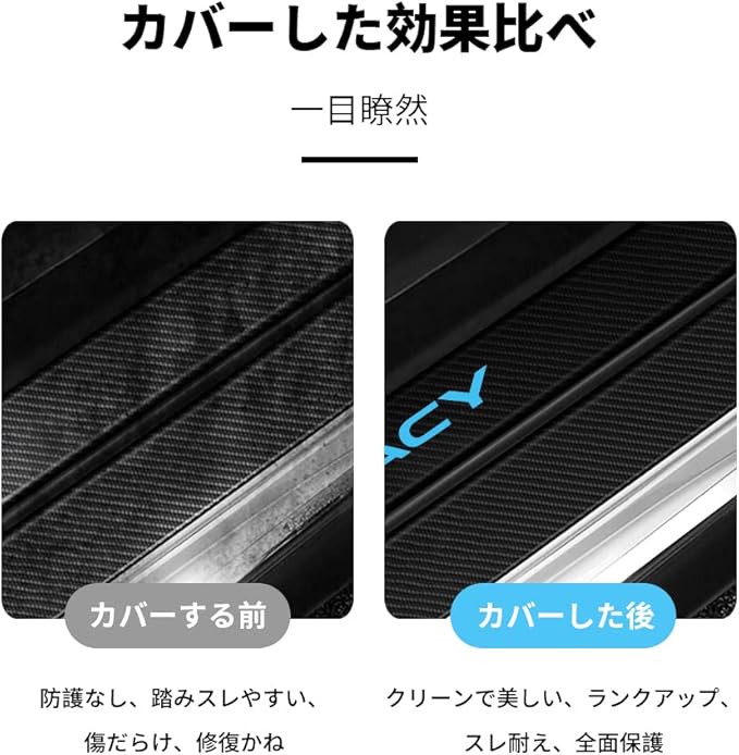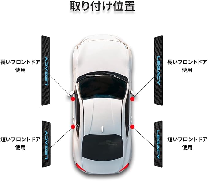 サイドステップガード スカッフプレート サイドモール スカッフプロテクトシート ドアガードステッカー 衝撃保護 キズ防止 傷防止 両面テープ付き 汚れ防止 4枚入れ 対応 スバル Forester, Outback Legacy (Legacy, ブルー)