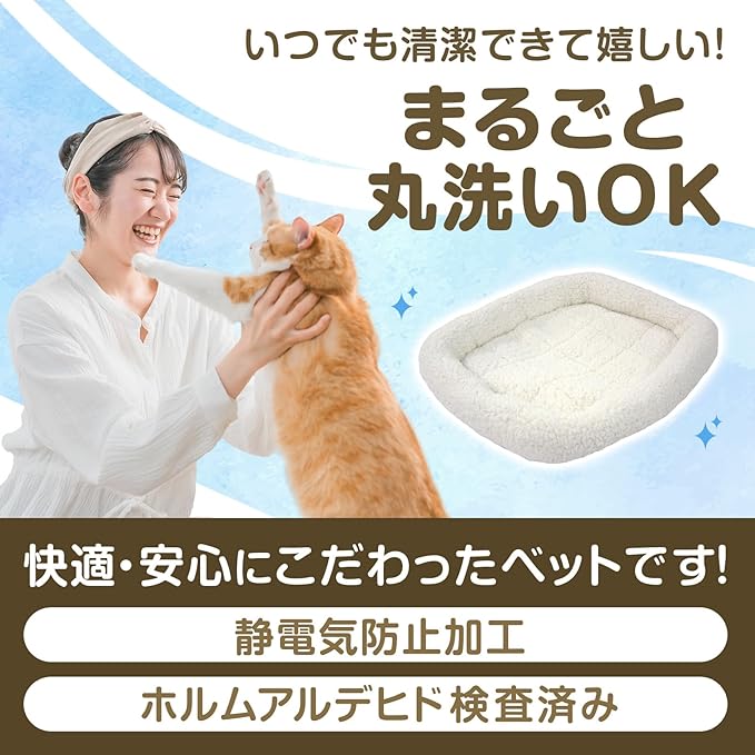 ・本品はペット用です。その他の用途には使用しないでください。 ・本品はペットが噛んだり、引っ掻いたりしないよう注意してください。 ・洗濯機による丸洗いはしないでください。 ・洗剤を使用する際は、中性洗剤を使用し漂白剤の使用は避けてください。 ・まれに色落ちする恐れがありますので、他のものと一緒に洗わないでください。 ・本製品は火気に近づけたり、高温になる場所に置かないで下さい。火災の原因になる場合があります。