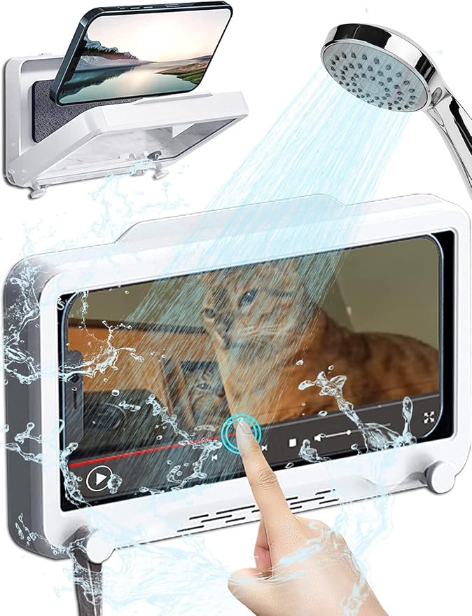スマホ 防水ケース お風呂 スタンド シャワー電話ホルダー 360 回転 角度調整 高さ調整可 iPhone防水ケース スマホケース 携帯電話スタンド 壁掛けスマホ 防水ケース スマホスタンド iPhone お風呂 スマホ 携帯 シャワー 貼り付けシール付き タッチスクリーン 防水防霧防塵 強力粘着 壁マウント 6.8インチ以下対応 お風呂キッチン棚浴室トイレ洗面所に活用