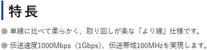 ●伝送速度1000Mbps(1Gbps)、伝送帯域100MHzを実現します。