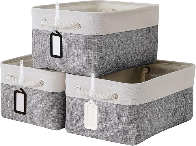 TcaFmac 収納ボックス 収納バスケット 収納かご 3個セット 折り畳み式 幅35*奥行25*高さ17cm ランドリーバスケット ストレージバスケット 洗濯かご 衣類収納ボックス 小物入れ おしゃれなインテリア雑貨 おもちゃ 車用 オフィス 引き出し ファブリック綿麻製 取っ手付き ホワイトグレー