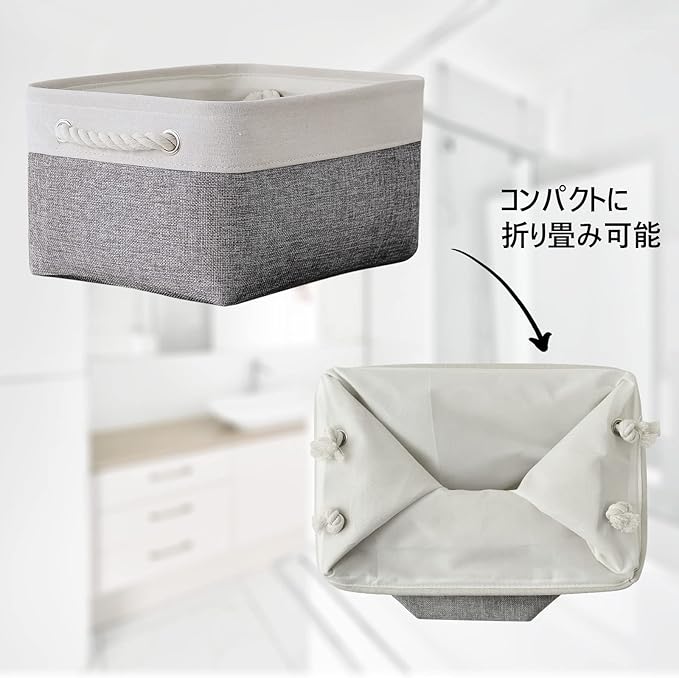 【折り畳み式】折り畳み式収納バスケットは、数秒で簡単に開けて収納できます。使いやすいです。軽量のコンパクトで、使用しない時は、簡単に折りたたんで収納できます。