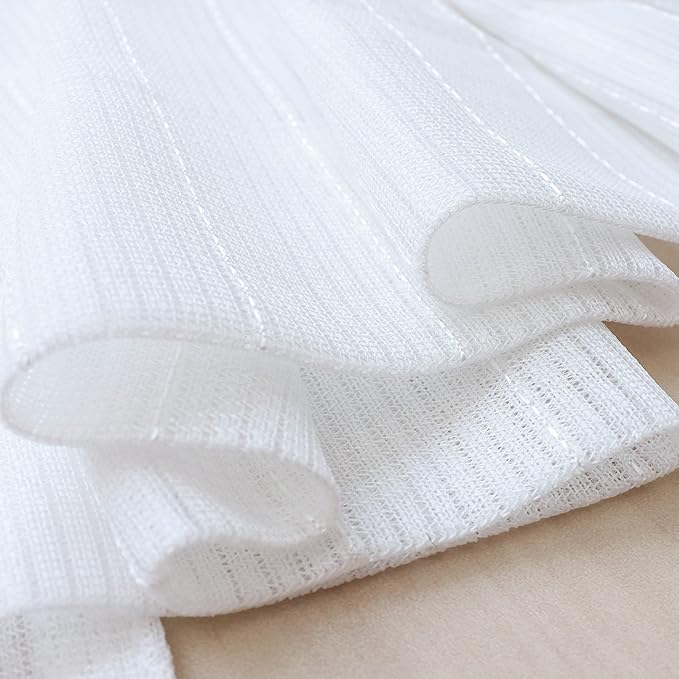 レースカーテン 2枚組 昼間 外から見えにくい ミラー UVカット カーテンフック装着済みでお届け おしゃれ ストライプ刺繍 幅100x丈228cm 2枚セット