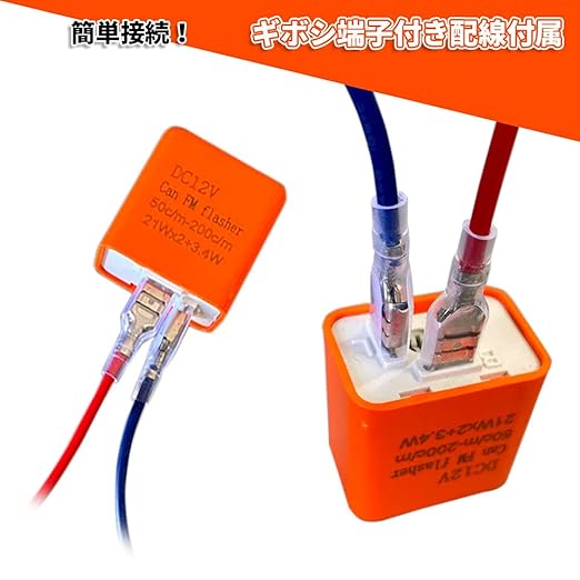 バイク LED 対策 ウインカー リレー ハイフラ 防止 速度調整機能搭載 2ピン ハイフラリレー ギボシ端子付き配線3本付属