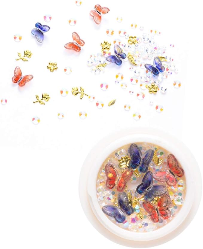 Frcolor ネイルデコパーツ 3D 蝶型 ネイルラインストーン DIY ジュエリーパーツ ネイルレジン用 デコレーション 6個セット(混合スタイル)