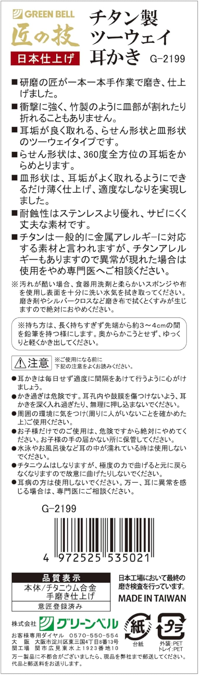 グリーンベル GREENBELL 匠の技 チタン製ツーウェイ耳かき G-2199