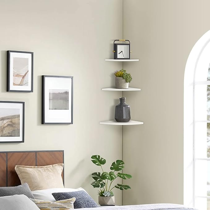 【どこでも置ける】モダンなスタイルの白い壁棚コーナーは、どんな装飾にもぴったりです。持ち帰って追加のストレージスペースを作ることができます。