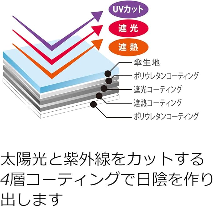 8本骨、遮光99%以上、遮熱-8℃、UVカット99%以上
