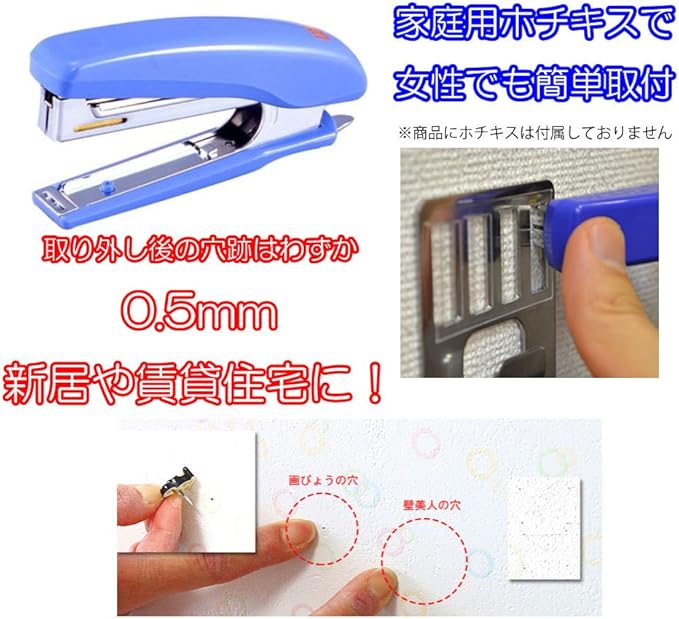 下地不要! ビスを使わない! 穴跡がわからない! 事務用ホチキスで簡単取付!