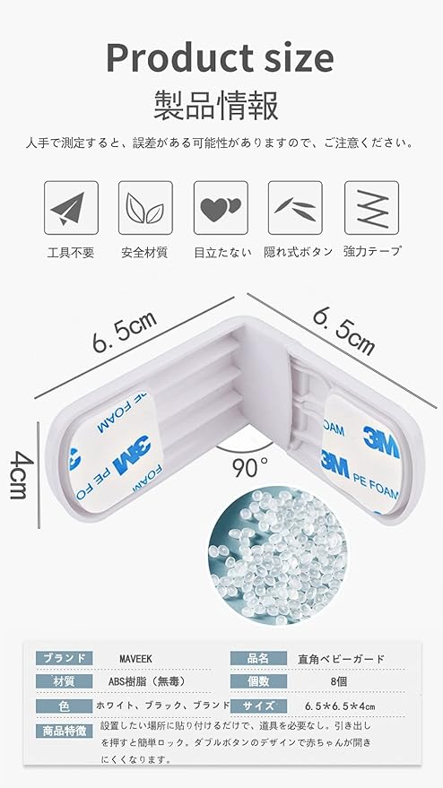 MAVEEK 引き出しロック ベビーガード キャビネットロック 直角ロック 子供 安全ロック ベビー ストッパー チャイルドロック 赤ちゃん 指はさみ いたずら防止 地震対策 工具不要 8個セット ホワイト
