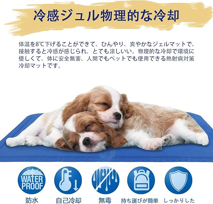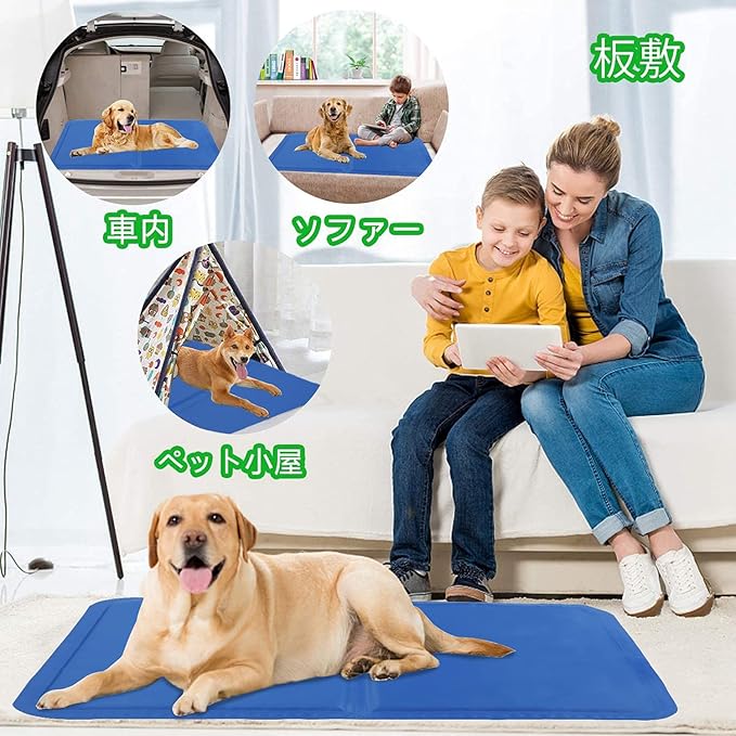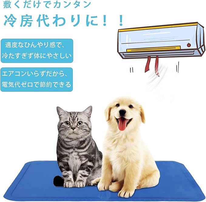 ペットクールマット ひんやりマット ひんやりシート 夏用 犬猫用 ひえひえ爽快 ジェルマット 冷却マット 涼感冷感マット 多用途 冷却マット 熱中症・暑さ対策 (L:50*65CM, ネイビー)