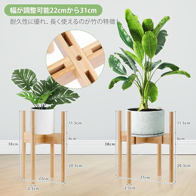 フラワースタンド 花台 竹製品 鉢スタンド プランタースタンド 植木鉢 植木鉢台 幅22-31cmまで調整可能 植木台 花ポットホルダ 組み立て簡単 鉢置き 屋外室内(ナチュラル 一個セット)