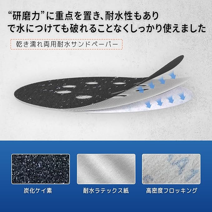 【研削効率がアップします】炭化ケイ素耐水ペーパー、乾き濡れ両用サンドペーパー には地球上で3番目に硬い化合物である炭化ケイ素を採用しました "研磨力"に重点を置き、耐水性もあり、意外と耐久性、で水につけても破れることなくしっかり使えました