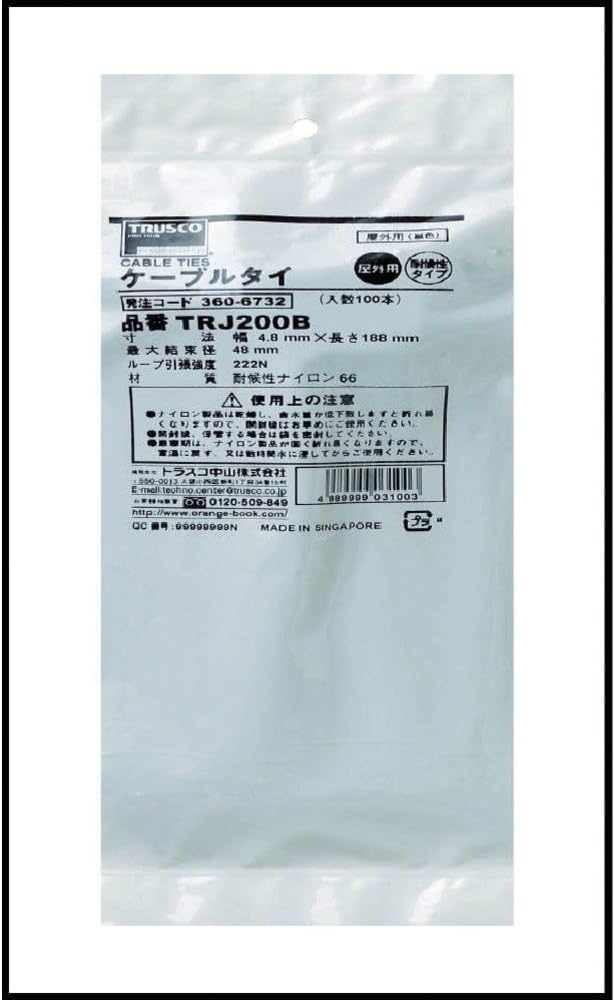 ●屋外用●使用温度範囲:-59~85℃●ワイヤ、ケーブル、ホースなどの結束に。●目通しがとても軽く、耐衝撃性に優れた標準タイプの結束バンドです。●屋外使用に適しています。●スムーズな目通しできっちりしまり、様々な方法で使用できる汎用性の高いナイロン結束バンドです。●サイズが豊富でφ22mmからφ330mmまでの結束が可能です。