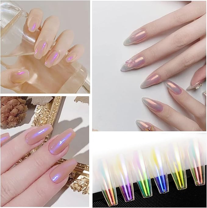 【色が豊富】オーロラカラーは6種類あり、ベースカラーによって色が変化し、さまざまなネイルをすることができます。友達の手伝いもできます。春ネイル、夏ネイル、秋ネイル、冬ネイルに適しています。