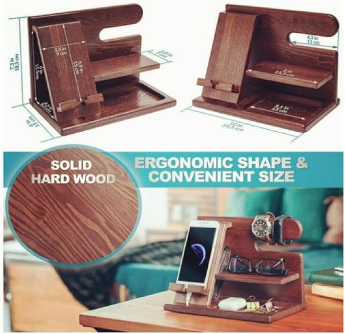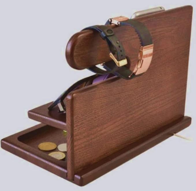 [SAISAC] 木製 携帯電話 充電 ドッキング ステーション スタンド 整理 コンパクト メガネ キーホルダー 財布 腕時計 オーガナイザー ガジェット 多機能 オフィス ギフト 記念品