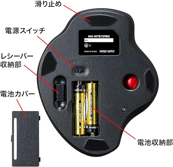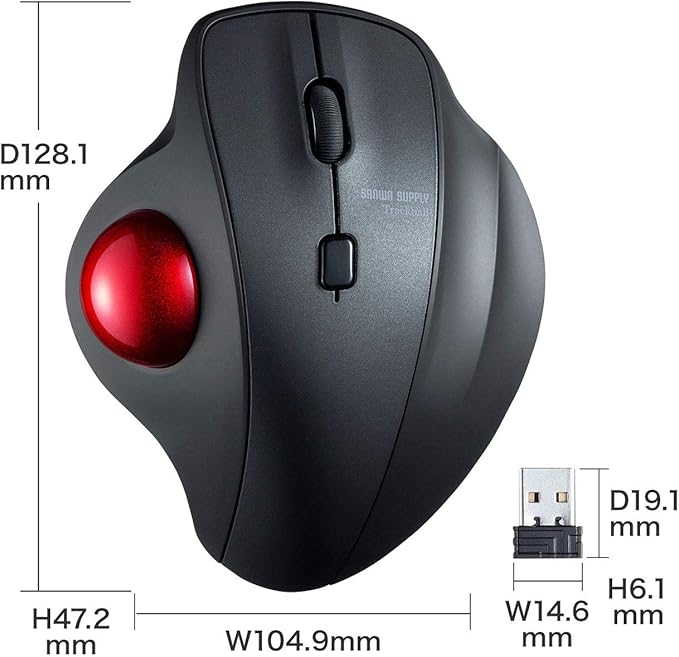 サンワサプライ ワイヤレストラックボール 静音 3ボタン 光学式 MA-WTB129BK