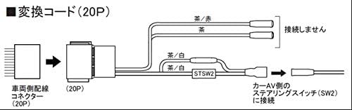 ホンダ車用20Pコネクターのステアリングリモコン配線を市販カーAVに接続するための配線コードになります。