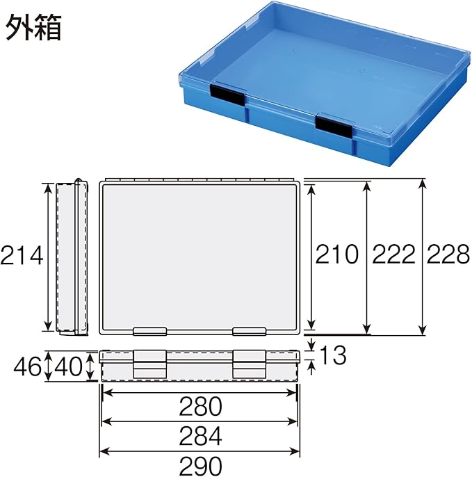 【原産国】日本【外形寸法】290(W) 46(H) 220(D)mm 【材質】ABS(本体)・AS(フタ)【重量】890g【内箱の入組内容】内箱G(B-353) 4個入り【外箱】B-359【容積】2.3L【用途】部品整理、小物整理、パーツ収納、部品ケース、部品箱、パーツストッカー、小物収納ケース、ネジ収納、ビス入れ、プラモデル・模型の部品収納、アクセサリーパーツの収納、ミニサイズのブロック収納、ビーズケース、アイロンビーズ収納、釣具収納、手芸用品収納、洋裁小物収納、文房具収納