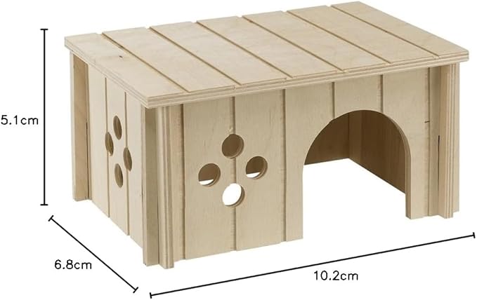 イタリアferplast社製の小動物用ウッドハウス。モルモットなどに。木製なのでかじっても安心。底板がないので、簡単にお手入れできて清潔! ! ■本体サイズ・・・W 26 D 18.5 H 13.5 cm■入り口サイズ・・・ W 9.0 H 9.0 cm■本体重量・・・750g※お客様に組み立てていただく商品です。湿度・温度の関係で木材が膨らみ、組み立てにくい場合がございますがご了承下さい。