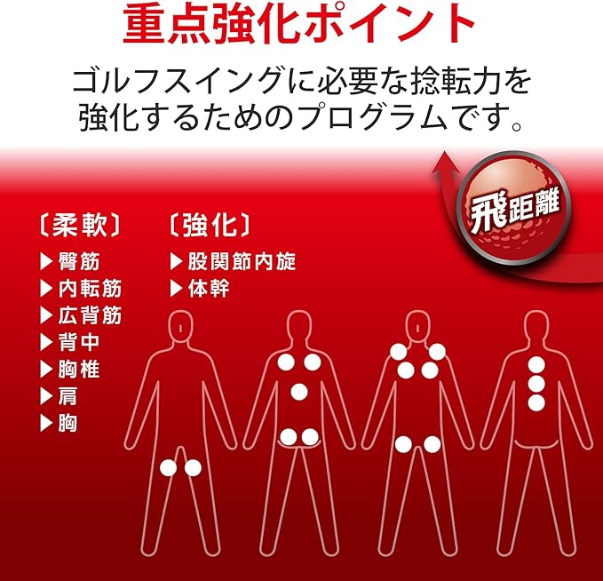 ゴルフスイングに必要な捻転力を強化するためのプログラムとエクササイズローラーです。