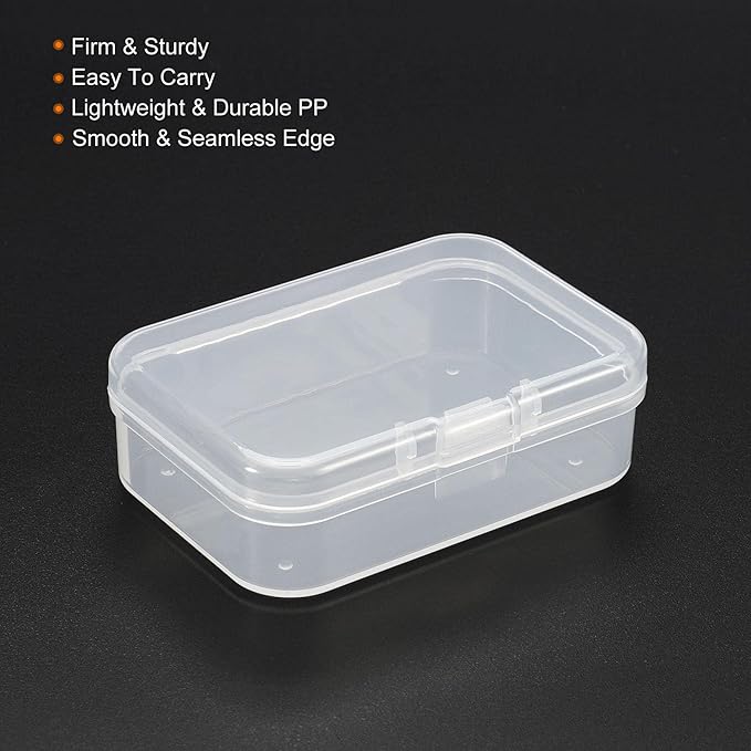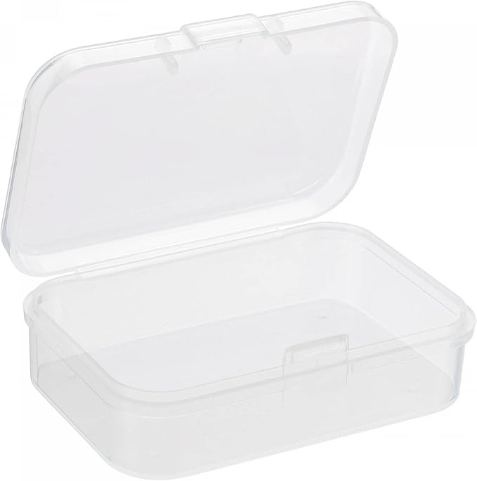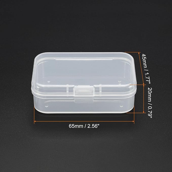 【小型サイズの透明収納ケース4個セット】寸法:約 65x45x20mm(長さ 幅 高さ)。素材:PP(ポリプロピレン) 製、カラーは透明(クリア)。開閉方式:ヒンジ付きフタ(一体型でフタが外れにくい設計)。
