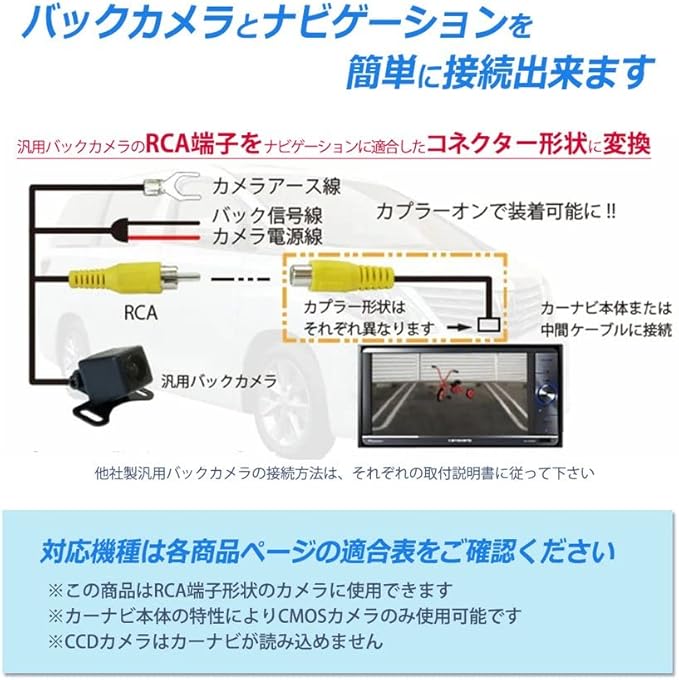 アルパインナビのバックカメラアダプラーを取り付ける事により 社外バックカメラのVTR(映像)信号の入力を可能にする配線キットです。