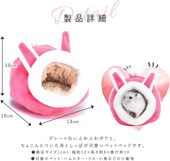 moin moin ハムスター リス 小動物 家 ハウス ペット ベッド クッション | ふわふわ もこもこ 冬 暖かい ピンク 中敷き付 洗濯可 うさぎ / 11 11 9cm 2102rh15