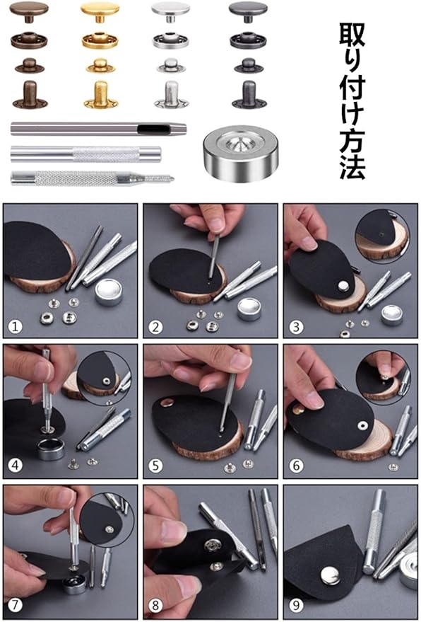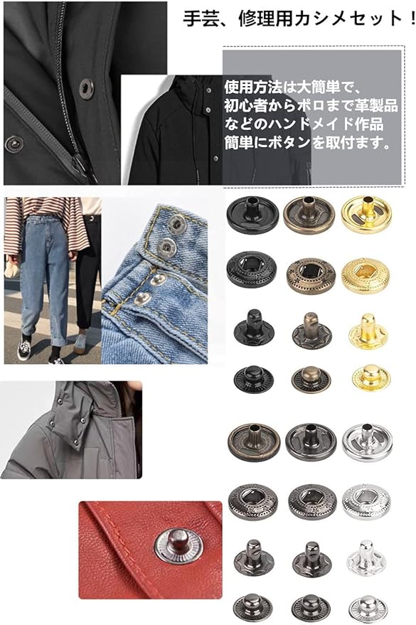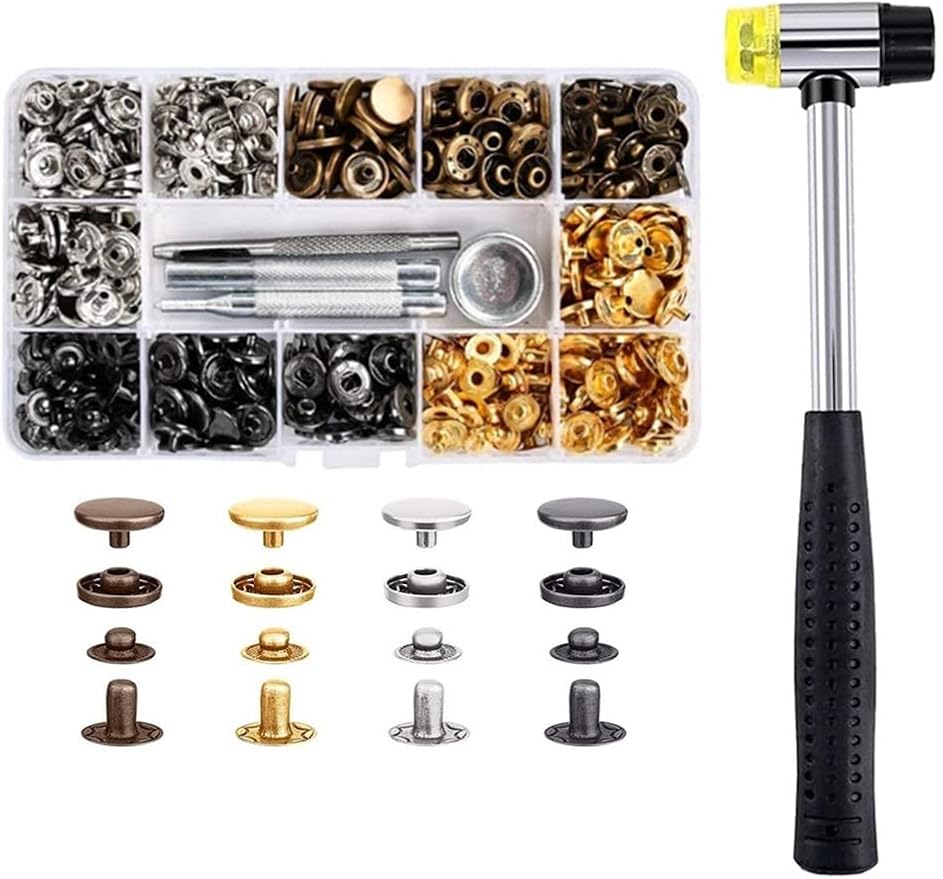 YFFSFDC レザークラフト カシメセット 4種類&ホック 4色 詰め合わせ ホック打ち工具 パーツ 120組 DIY 手作り ハンドメイド 布革細工 靴 ジーンズカバン アクセサリー 収納ケース付き ゴム槌付き