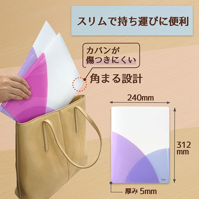 スリムでプリントの持ち歩きに便利。入れやすくてずれにくい、横ずれ防止ストッパー付きの『スリムホルダーファイル』