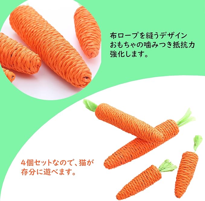 猫 おもちゃ 4個セット にんじんおもちゃ 鈴入り 爪とぎ 歯磨き かわいい 猫歯ぎしり棒 縫いぐるみ キャット 猫遊び 運動不足解消