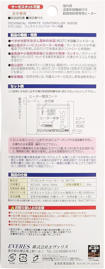 エヴァリス プリセットオートヒーター 15BETTA ベタ用