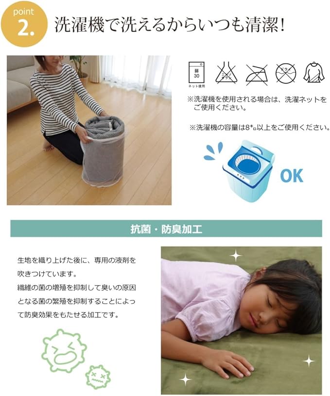 ご家庭の洗濯機で洗えるウォッシャブル仕様ですので、清潔にご使用頂けます。