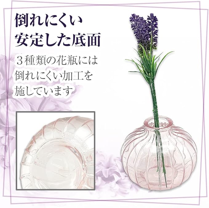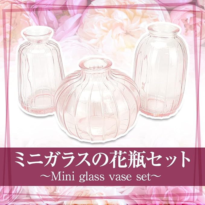 フラワーベース 花瓶 飾り瓶 北欧風 ガラス素材 ミニ 一輪挿し 小花 生花 3個セット (ライトピンク)