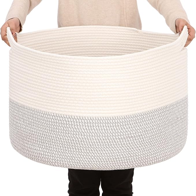 Sea Team ランドリー収納 コットンロープバスケット 収納かごバ スケット 持ち手付き ランドリー ランドリーバスケット 収納ボックス 洗濯物 タオル 折りたたみ リビング用 インテリア 収納バスケット おしゃれ 可愛い 混色 大容量 (ミックスグレー 56x56x36cm)
