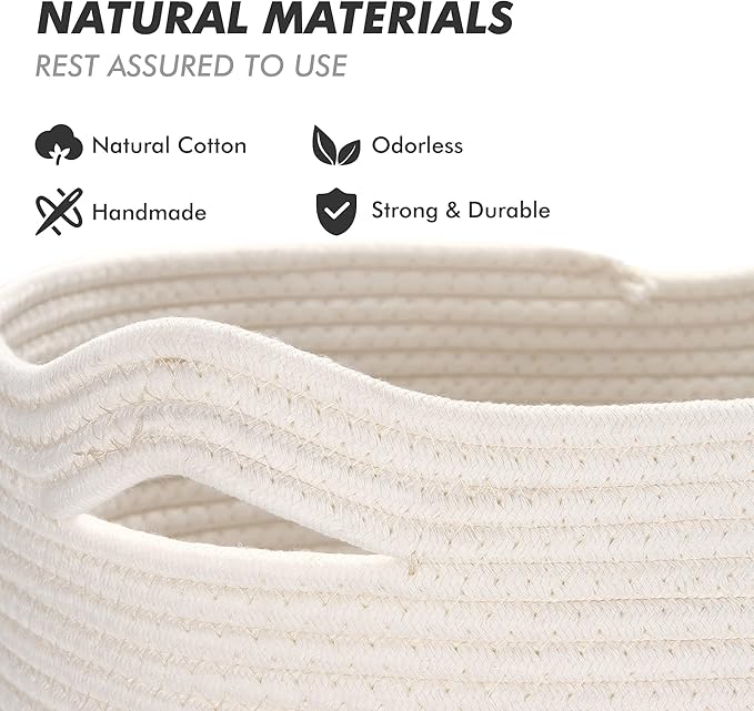 【天然素材】本製品は一本のコットンロープを丁寧に重ね合わせて縫い上げて作られたシンプルな収納バスケットです。化学成分を含まず、柔らかく肌や環境にやさしい天然のオーガニックコットンを使用していて、赤ちゃんや子供でも安心に使用できます。シフォン、綿、シルクの洋服、フローリングに優しいバスケットです。