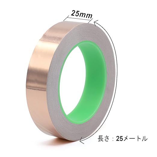 BOMEI PACK 銅箔テープ 両面導電性 金属テープ 導電性 粘着テープ (25mmx25m)