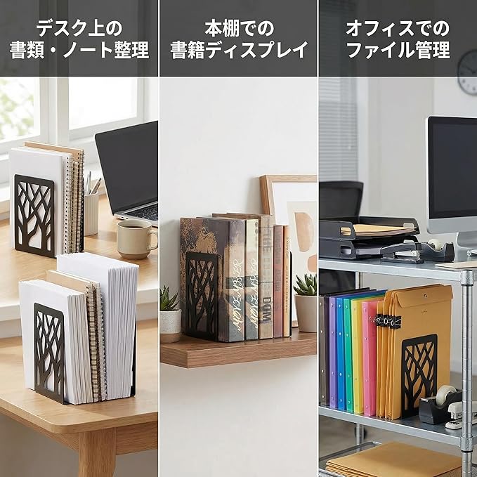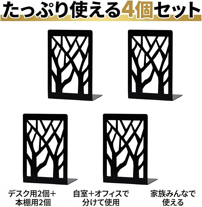 【おしゃれツリー本立て】北欧風ツリーデザインのブックエンド4個セットで、デスクや本棚をスタイリッシュに整理。文庫本からA4ファイルまで幅広く対応し、インテリアとしても映える本立てで空間を格上げします。